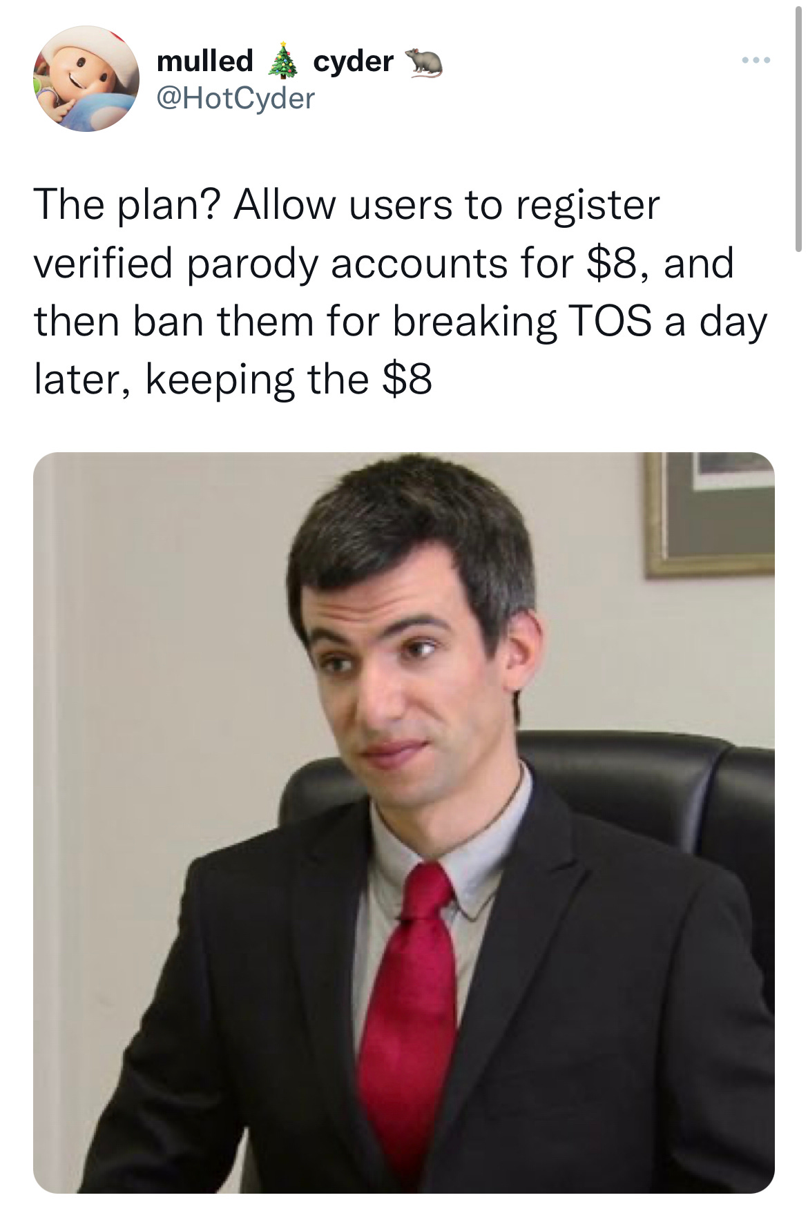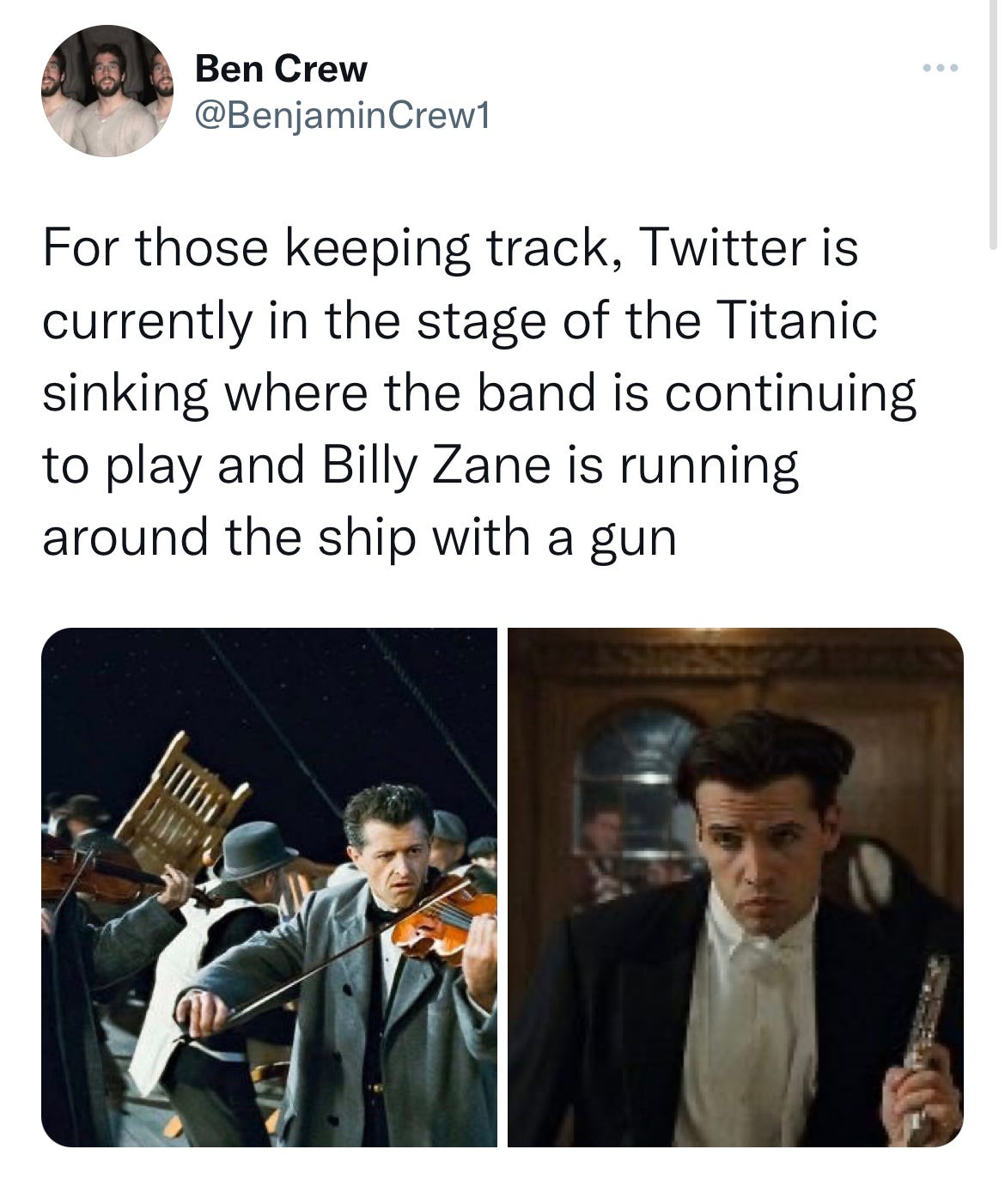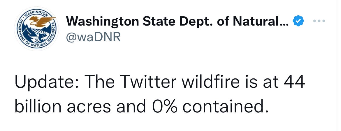 I don’t want Twitter to die. It became my community in the midst of COVID and helped me build real friendships. But the substitute teacher vibes from this week are truly the most fun I’ve had on that site in a long time. And getting to make fun of Elon Musk while the ship sinks makes it all a little worth it.